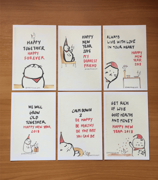 Aorcatclub has launched all collections with love. For New Year 2018, I’d like to thank you fan page that followed Aorcatclub for a long time with “Happy Together” collection. You can send it as E-Card. It’s free download. You can send to friends, loved ones or even your cats. Card size is 4×6 inches. If you prefer print version, you can also download in PDF and print on a nice paper. Don’t forget to write something on the blank space at the back card. It will be more special, I believe.