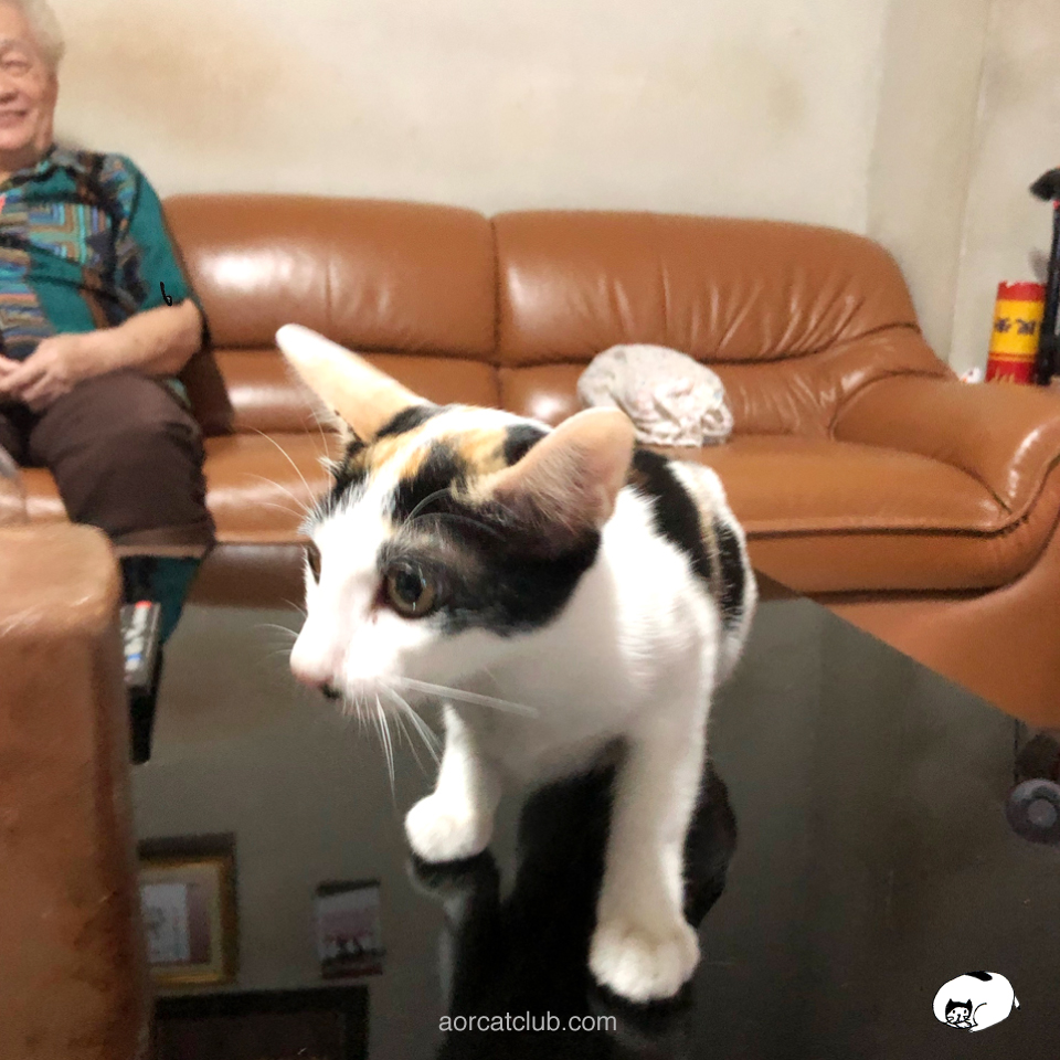 พอหาเจอ ก็เห็นลูกแมวสามสีตัวจิ๋วกำลังร้องสุดเสียงเรียกแม่แมว และพี่ๆ เราเลยอุ้มกลับมาที่บ้านพามาให้พี่เล็กดู เป็นอันว่าใช่ลูกแมวตัวที่เล็งไว้จริงๆ ไม่รู้ว่าเป็นความบังเอิญที่แมวตัวนี้หลงกลุ่มแล้วตกลงมา หรือเป็น Destiny ที่ทำให้พี่เล็กได้แมวสามสีตัวที่นึกเอ็นดูตั้งแต่แรกเห็น ได้เขามาเลี้ยงดูจริงๆ สมใจ ส่วนชื่อเต้าหู้ พี่เล็กก็ใช้เรียกตามนั้น ตั้งแต่ตอนที่เราตั้งชื่อตอนแจ้งหมอเพื่อตรวจสุขภาพ “เต้าหู้” เลยมีทะเบียนราษฎร์แมวอยู่ที่ร้านหมอเจี๊ยบเรียบร้อย